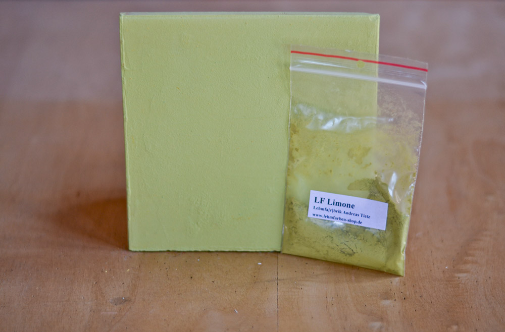 - Unsere gelb-grüne Lehmfarbe "Limone" ist übrigens nicht nur in Pulverform nahezu unbegrenzt haltbar. Im Gegensatz zu einer chemisch gebundenen Farbe, können Sie einmal angerührte Lehmfarben auch im Tiefkühler sehr lange zwischenlagern.