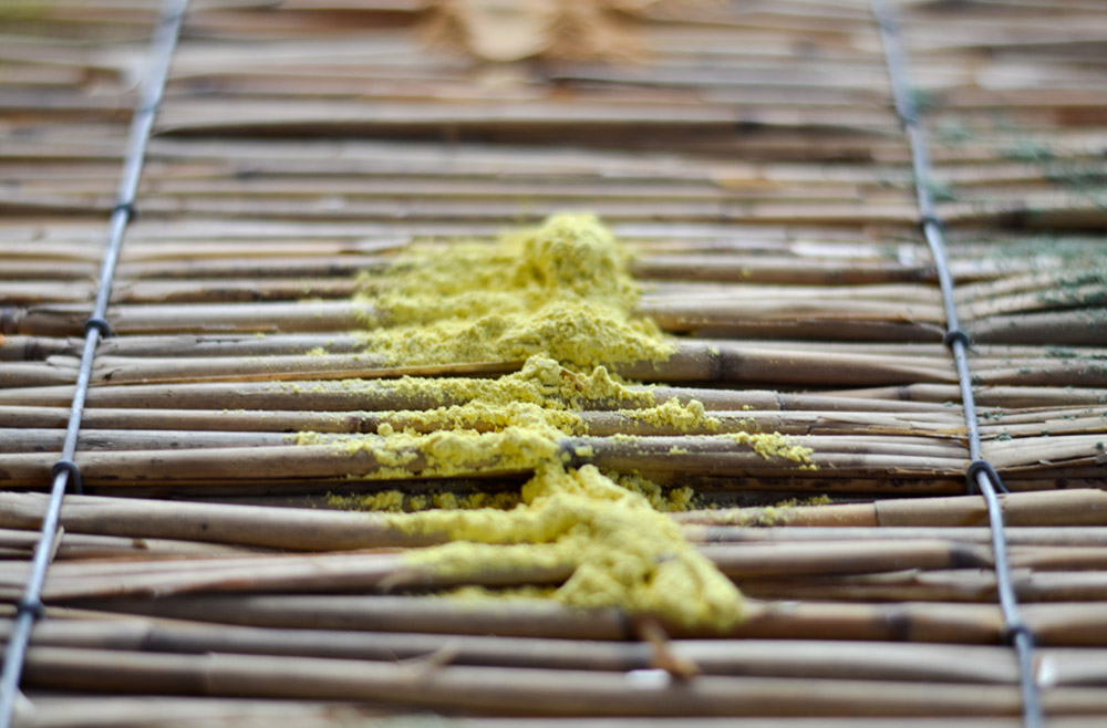 So verarbeiten Sie unsere gelb-grüne Lehmfarbe Zitronenfalter in Pulverform